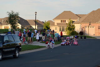 I was feeling extremely ill (Ben had to come home early from work because I just couldn't function ) on Tuesday so I wasn't going to attend. Ben took it upon himself to shop for and decorate Chelsea's stroller!! Once he had it complete I pulled myself together and decided I just had to participate since Ben worked so hard on the stroller :) I'm glad that I got out of bed and walked the parade and socialized a bit. Thank goodness I had just baked some cupcakes the night before so I had a dessert to share! I ended up going home early, but Ben and Chelsea stayed for an extra hour and he said it was a lot of fun. It was great see so many people out and about in the neighborhood. Our neighborhood seems very 'sleepy' this summer.