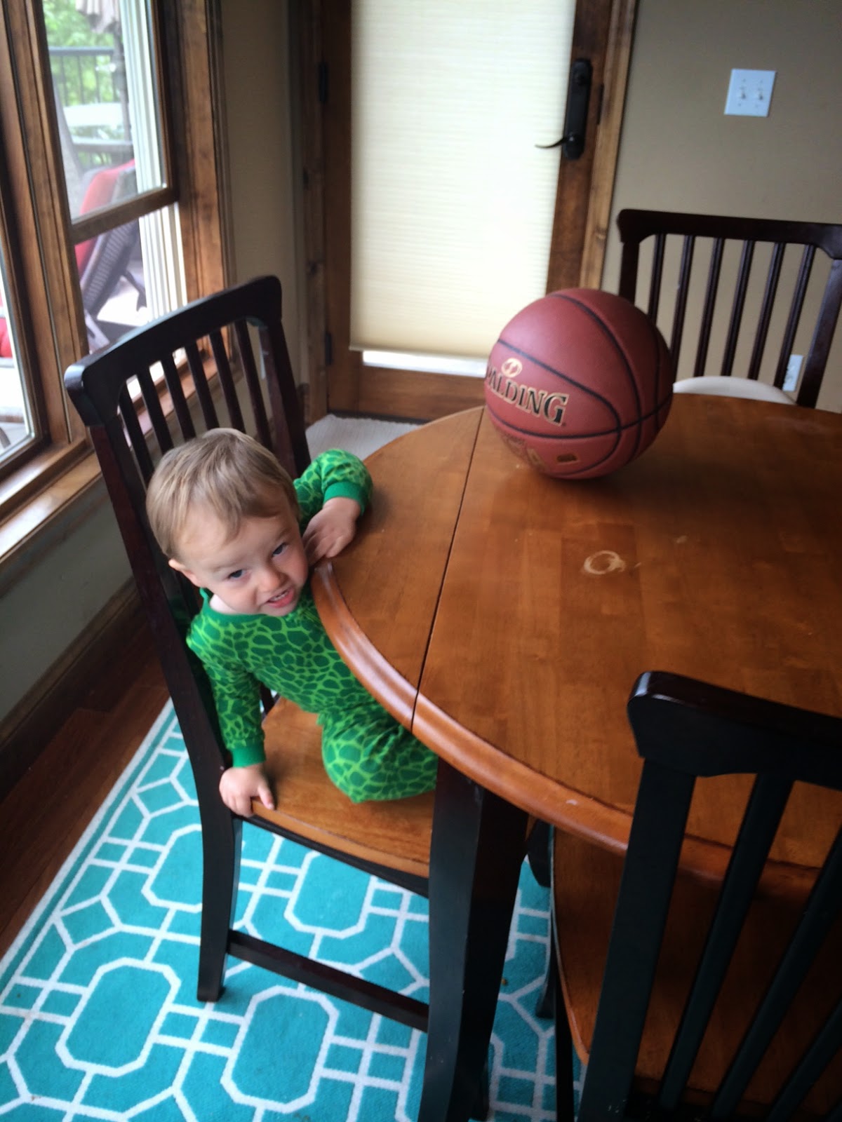 Most toddler have a 'lovie.' Some choose dolls, stuffed animals, blankets or paci's. My child chooses a full sized basketball.... Tyler has become obsessed with his basketball and brings it everywhere with him.